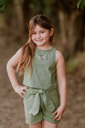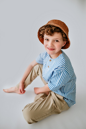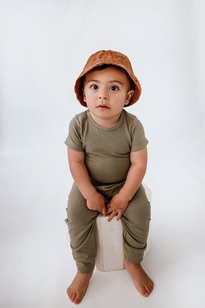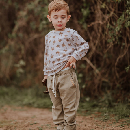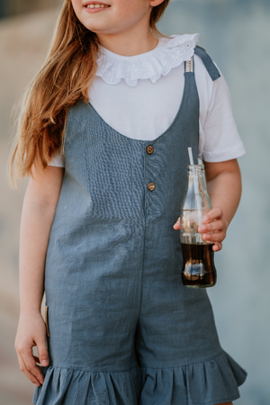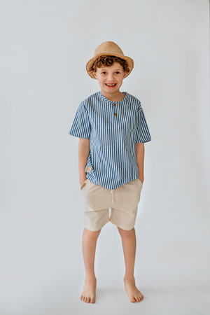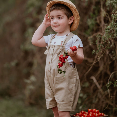 jardindero color arena, con tirante regulables y bolsillo delantero.