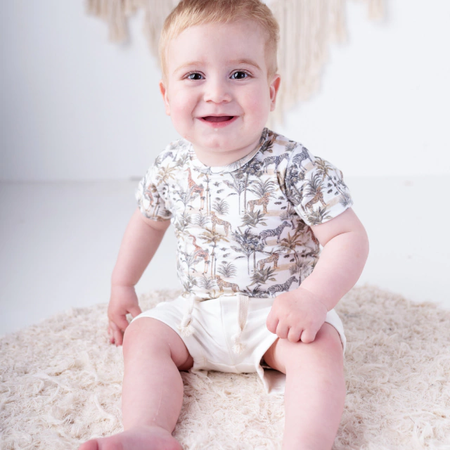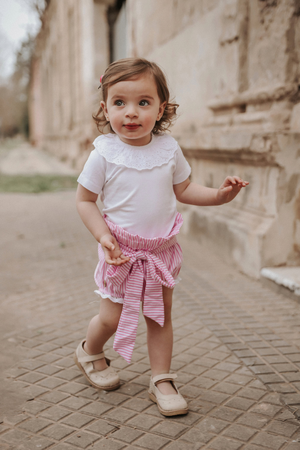 Conjunto de algodón elastizado rayado, consta de un body mc y un shortt