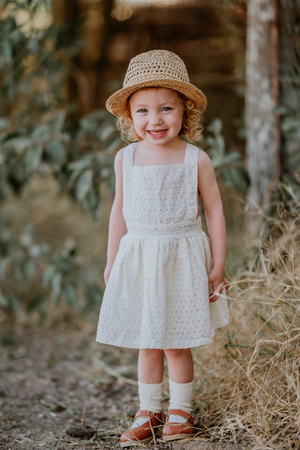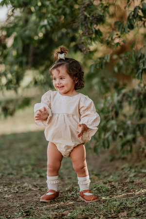 VESTIDO CRUDO CON VOLADOS Y GUIPIUR