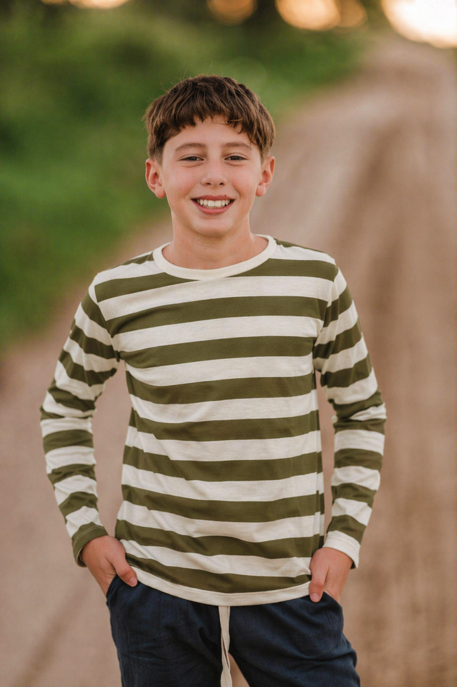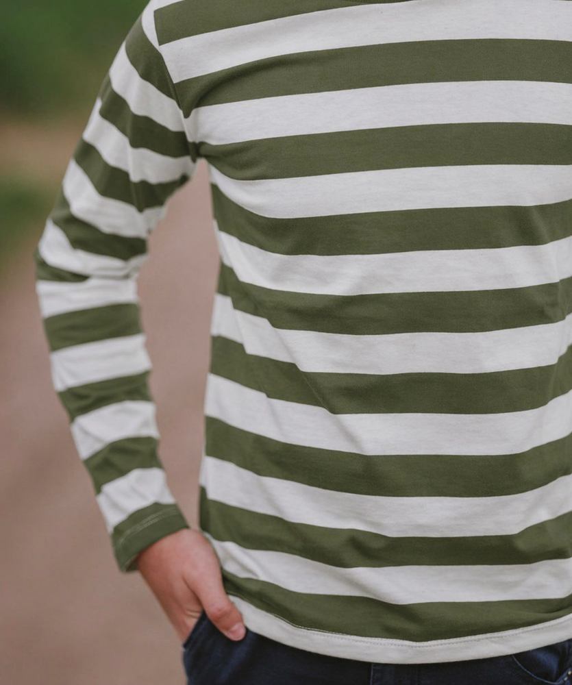Remera de algodon rayado. Variante verde.-