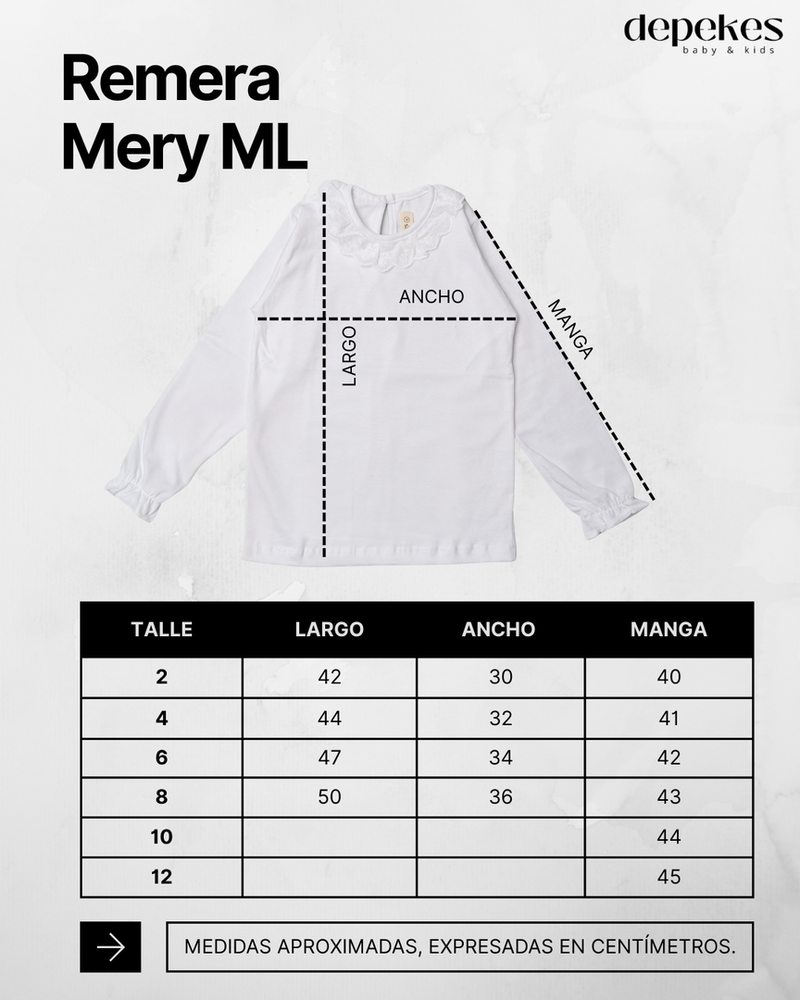 TALLE LARGO ANCHO MANGA 2 38 30 35 4 42 31 39 6 47 34 41 8 49 35 42 10 50 36 44 12 55 39 45