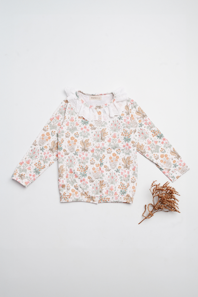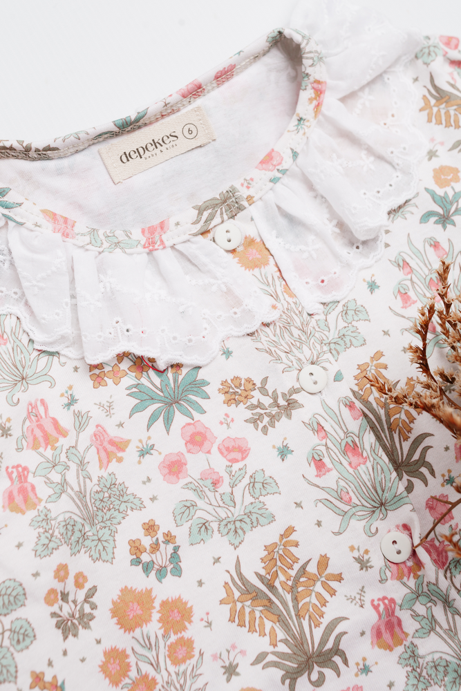 Materiales: Confeccionado en algodón elastizado, con broderie aplicado en el cuello.