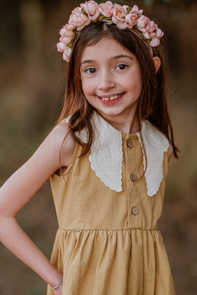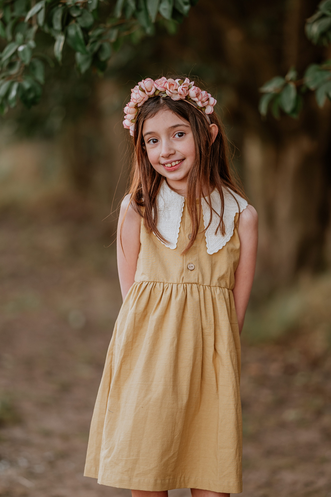 Materiales: Confeccionado en tusor liviano, color avellana, 100% algodón. con cartera en el delantero, y cuello aplicado.