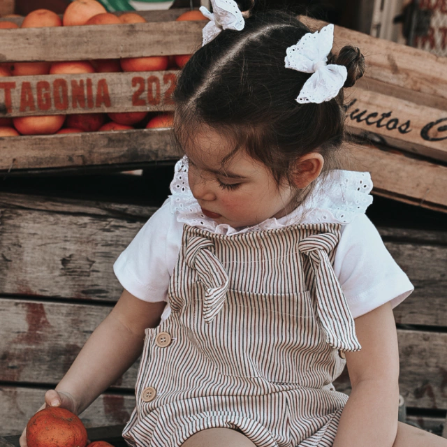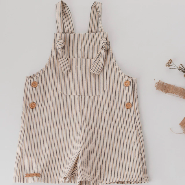 Materiales: Confeccionado en tusor liviano rayado, 100% algodón.
