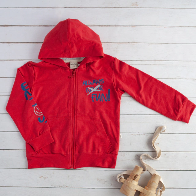 Campera rojo, con estampa.