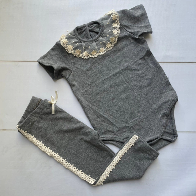 Materiales: Confeccionado en algodon elastizado, con aplique de tul en el cuello.