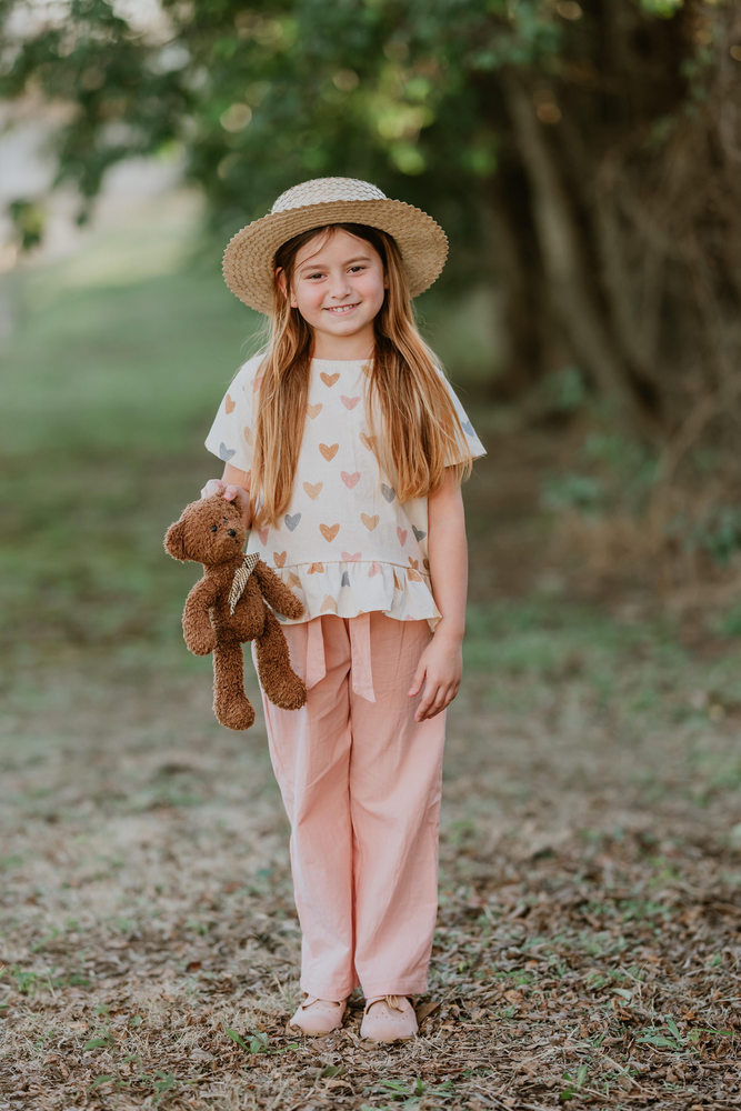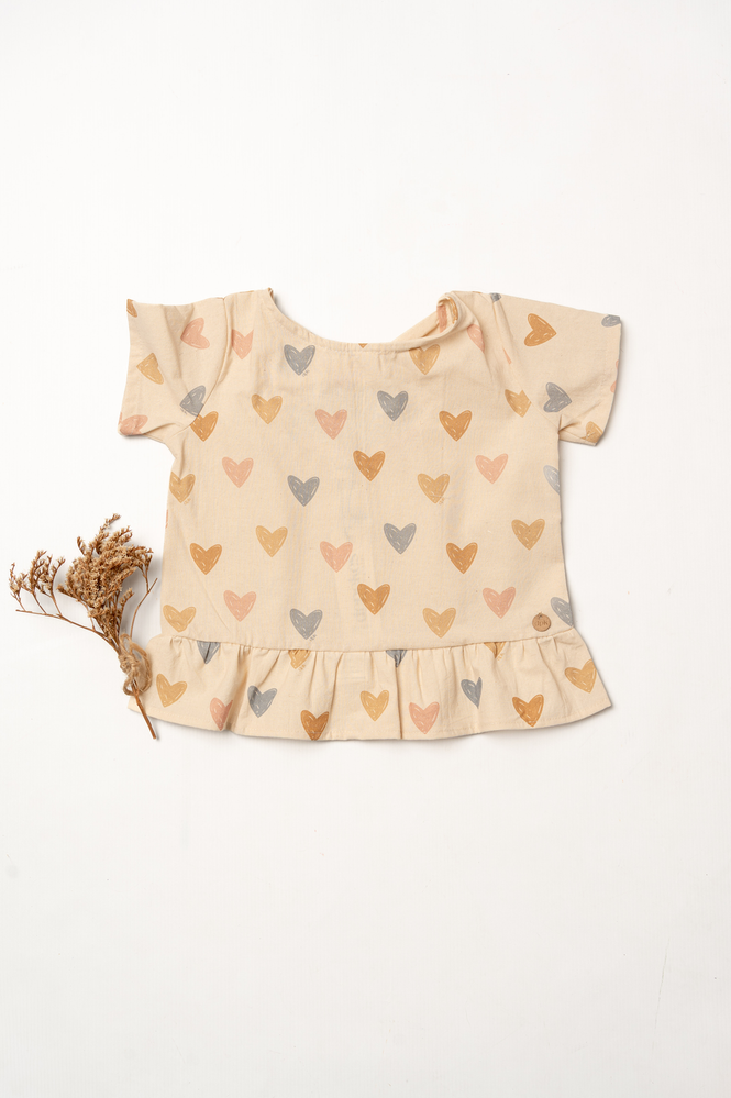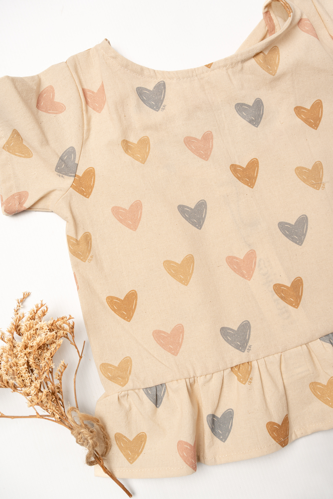 Blusa estampada con diseño de delicados corazones colores pasteles.