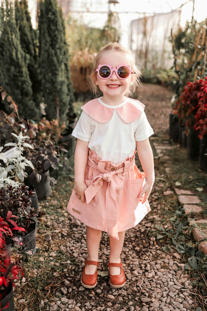 Remera de algodón con cuello aplicado de tusor con detalles bordados.