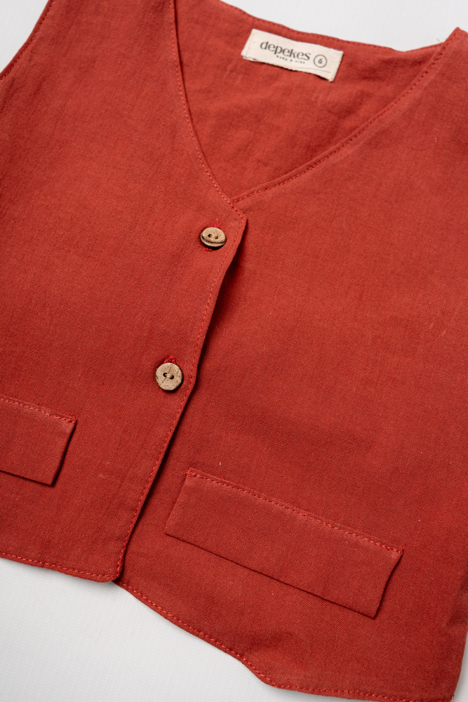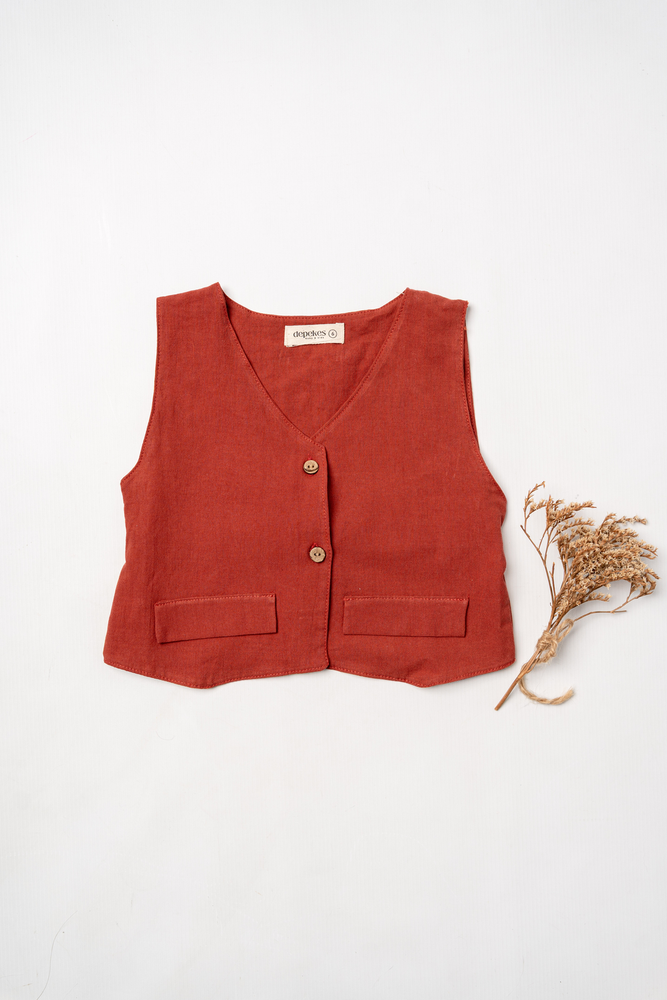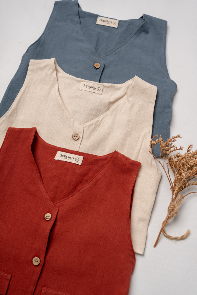 Materiales: Confeccionado en tusor liviano, con tiras ajustables en la espalda.