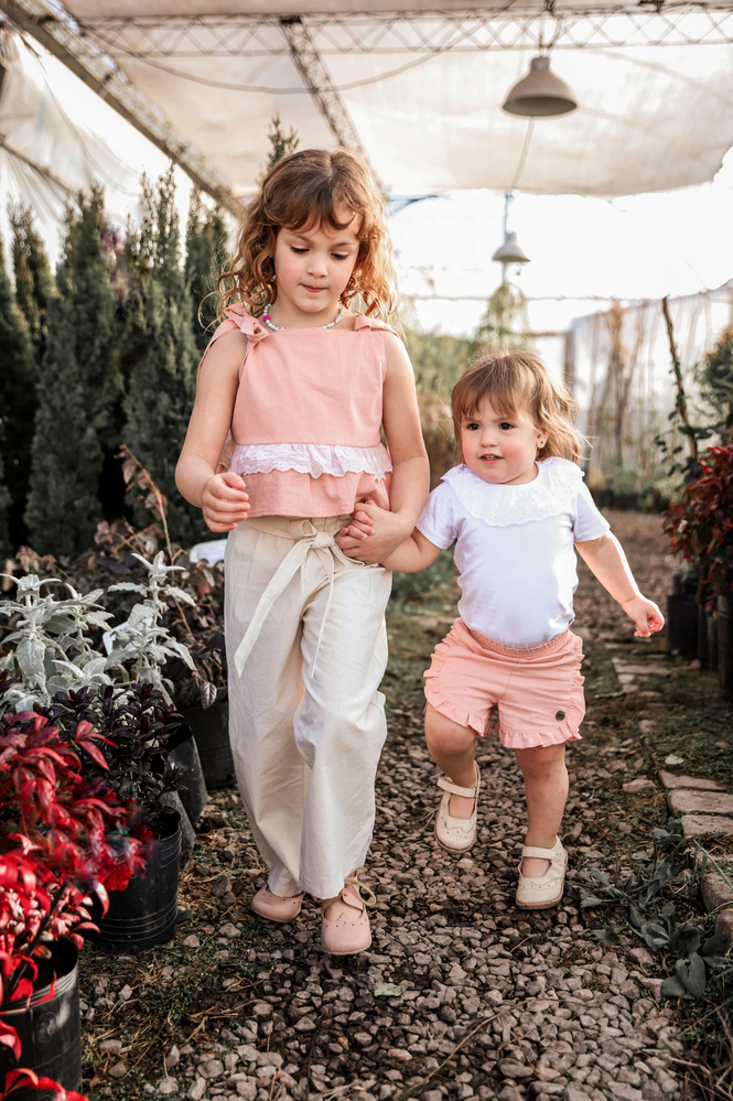 Materiales: Confeccionado en algodón elastizado, con volado de borderie en el cuello.