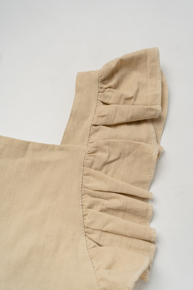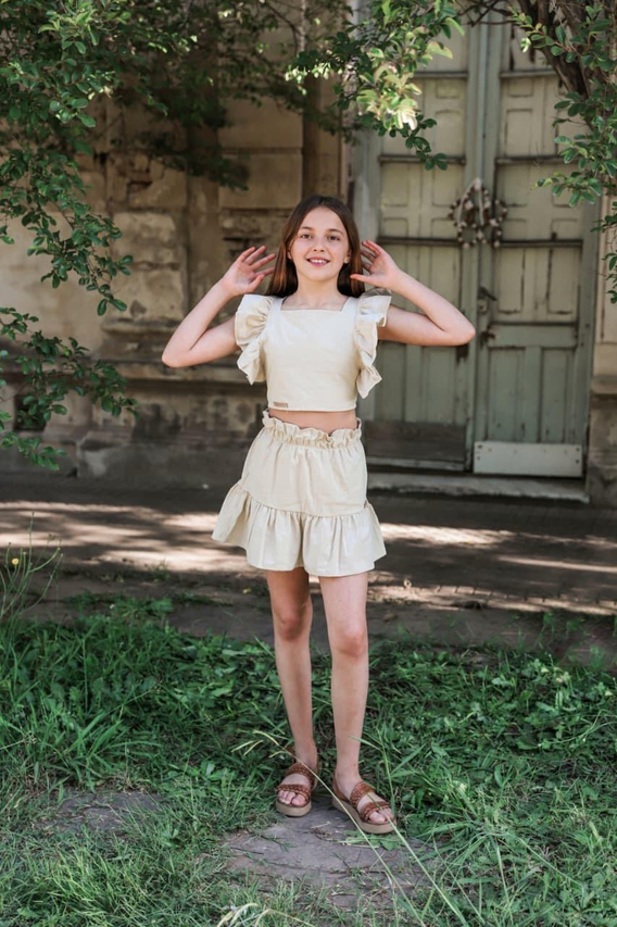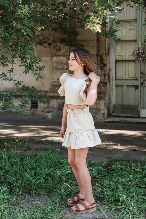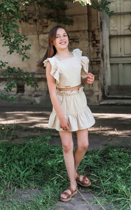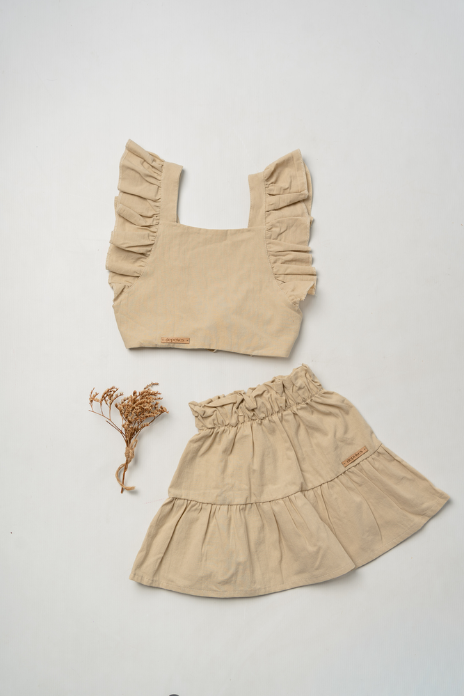 ❤️ Conjunto LIRIO conjunto dos piezas de color beige claro, que consta de una blusa con volantes y una falda a juego.