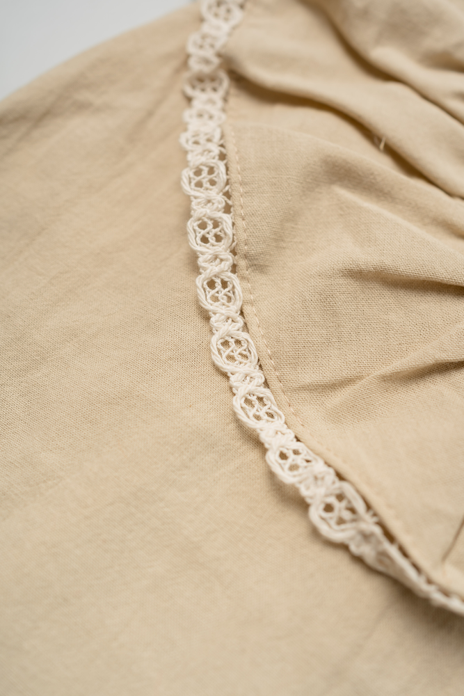 El encanto de lo simple. Su volado en V realza la delicadeza del diseño y lo convierte en una prenda fresca, cómoda y con movimiento natural. Ideal para acompañar los días de verano con un aire liviano y romántico.