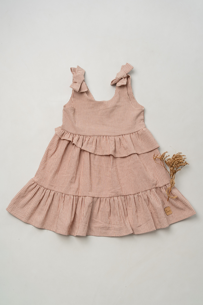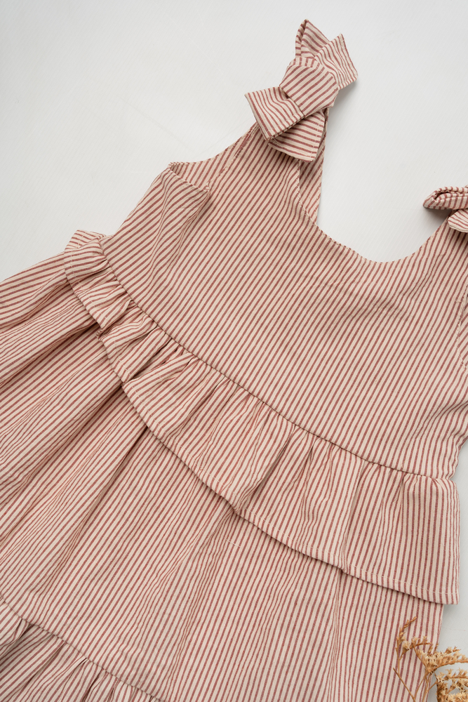 Vestido 3 volados rayado rojo. con tiras regulables,