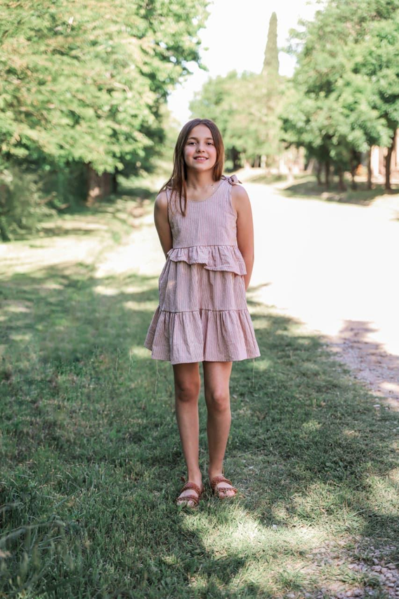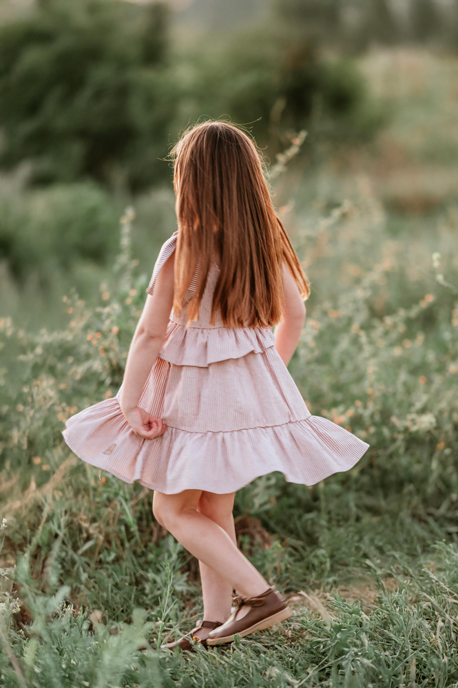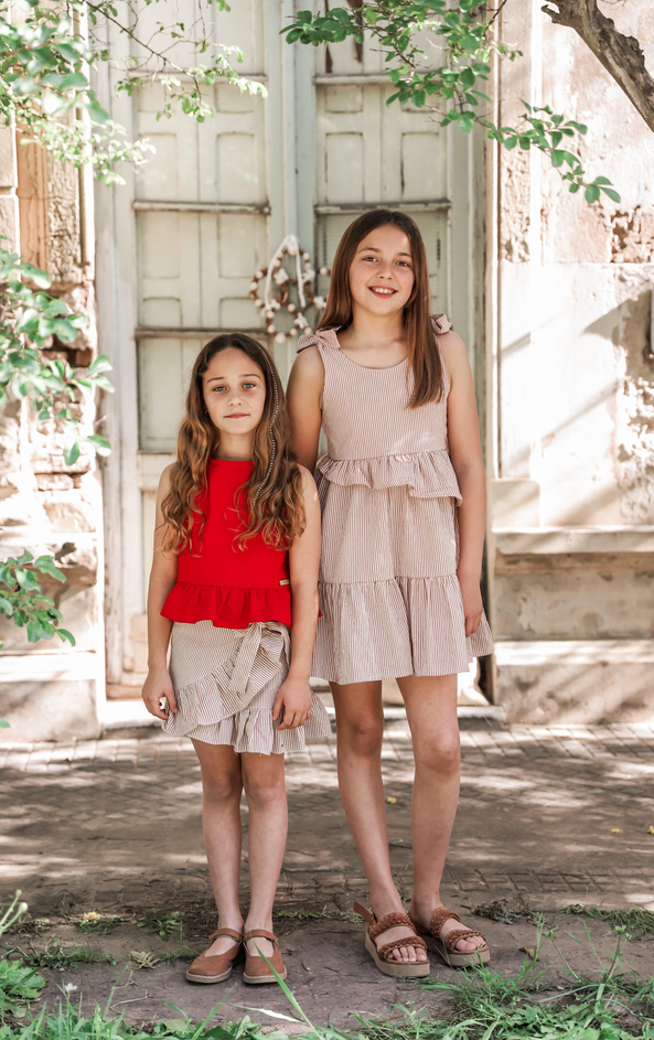 Romántico, liviano y lleno de movimiento: el Vestido París es una opción encantadora para los días más cálidos. Con su diseño de volados y breteles anudados, combina frescura y estilo en cada detalle. Ideal para acompañar a las peques en salidas, celebraciones o tardes de juegos, aportando comodidad y un toque delicado con su textura natural y suave.