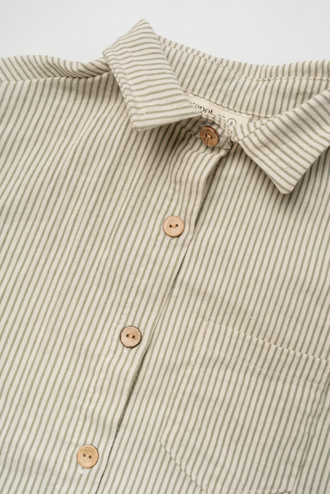 🌿La Camisa Monstera combina frescura y elegancia natural. Su tejido de tusor liviano 100% algodón ofrece una textura suave y respirable, ideal para los días cálidos. El diseño rayado en tonos verde y natural aporta un estilo clásico y versátil que se adapta tanto a looks relajados como más arreglados. Los botones de madera y el calce cómodo hacen de esta prenda un básico con encanto artesanal y atemporal.