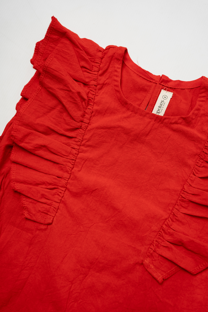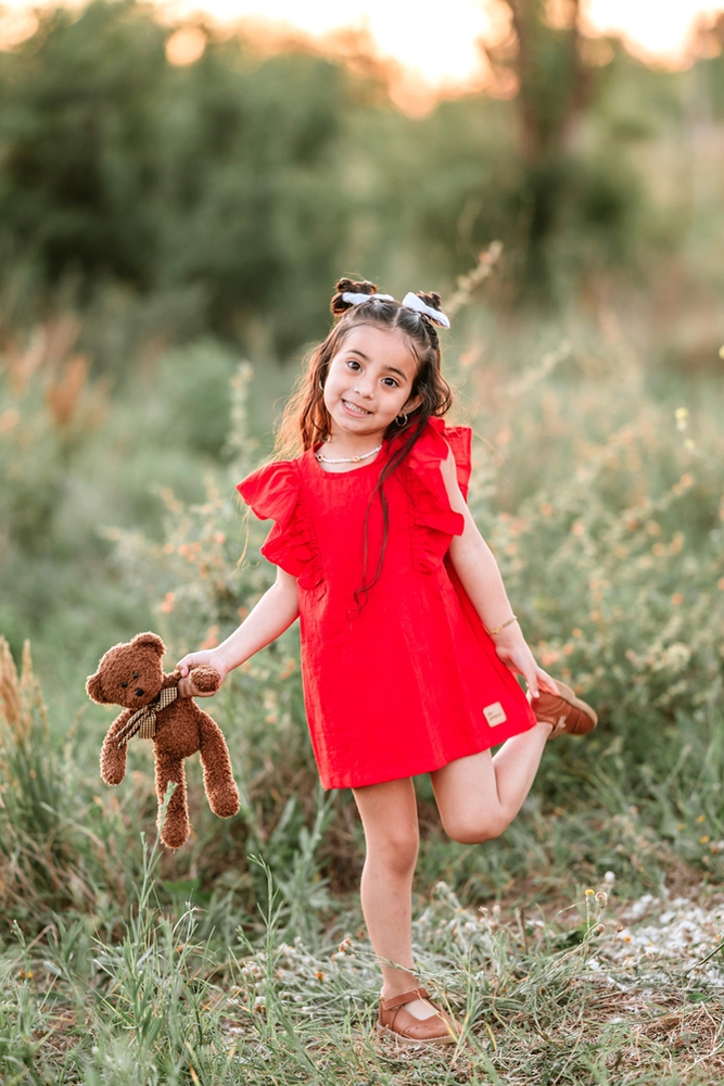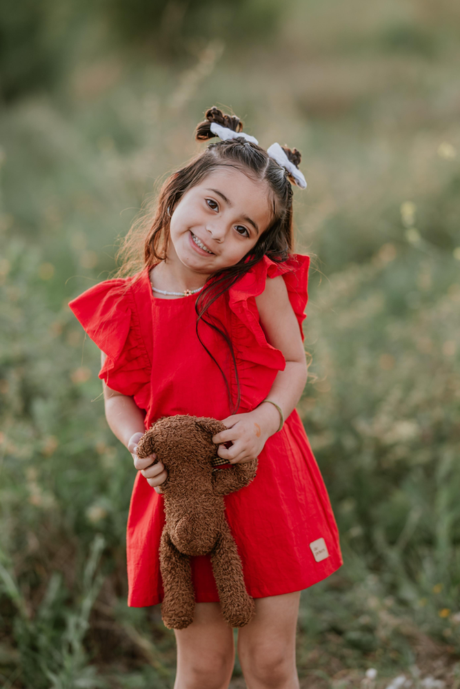 El Vestido Valencia es pura dulzura y estilo. Confeccionado en tusor liviano 100% algodón, ofrece frescura, suavidad y libertad de movimiento para las pequeñas. Su diseño recto con volados en los hombros le da un aire moderno y encantador, ideal para usar en cualquier ocasión. Perfecto para acompañar juegos, paseos o momentos especiales con total comodidad y alegría.