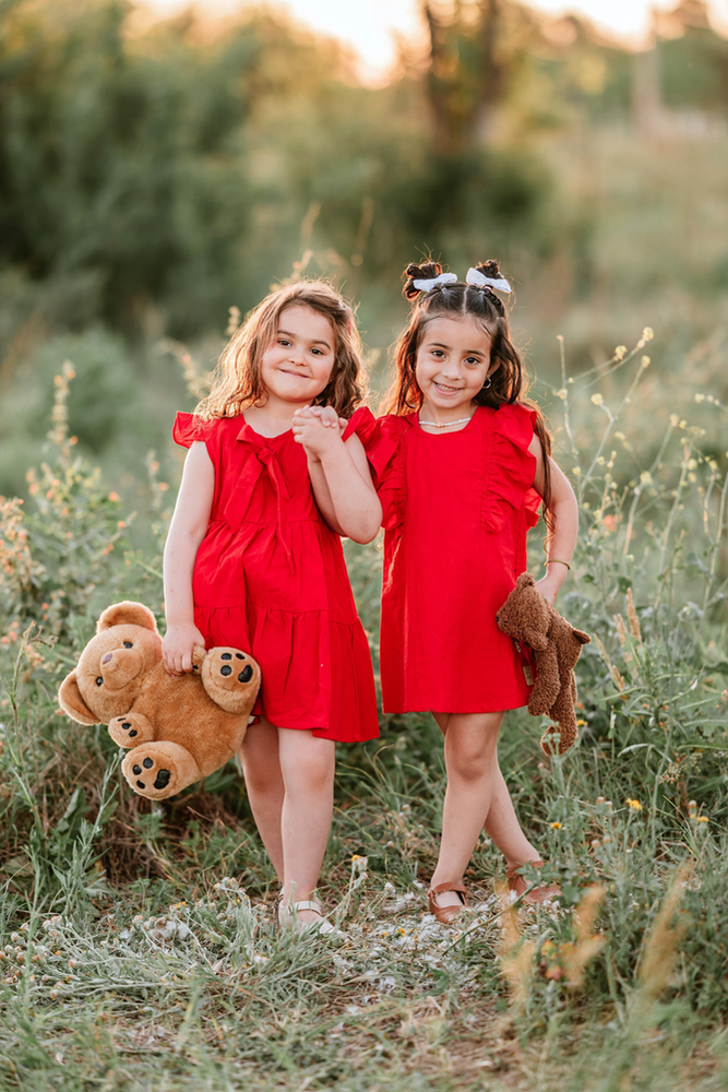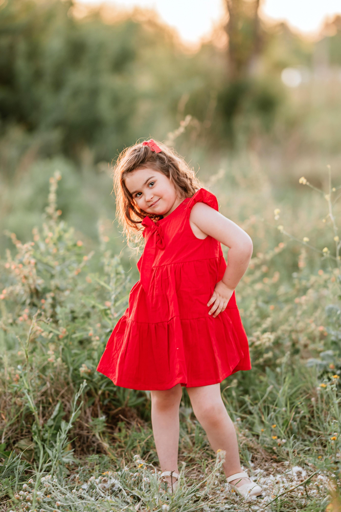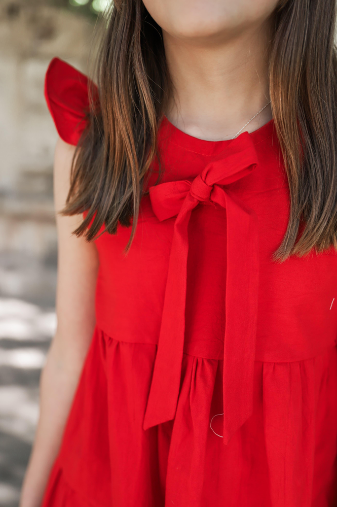 El Vestido Atenas combina frescura y encanto en una prenda que enamora. Con su corte amplio y fluido, confeccionado en tusor liviano 100% algodón, ofrece comodidad y movimiento para los días más cálidos. Su tono rojo vibrante resalta la alegría y energía infantil, mientras los volados y el moño al frente aportan ese toque delicado y femenino que lo vuelve único. Ideal para usar tanto en ocasiones especiales como en el día a día.