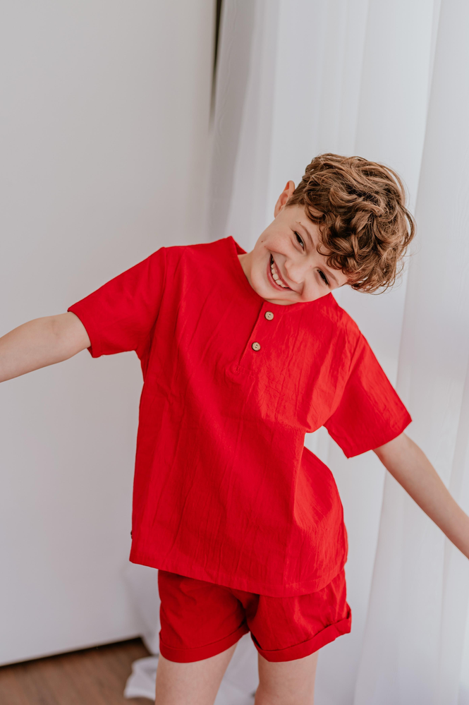 Una prenda versátil y con diseño minimalista, confeccionada en tusor liviano 100% algodón. Su textura suave y liviana la convierte en una opción ideal para los días cálidos, mientras que su cartera delantera con botones de madera aporta un detalle distintivo y funcional.