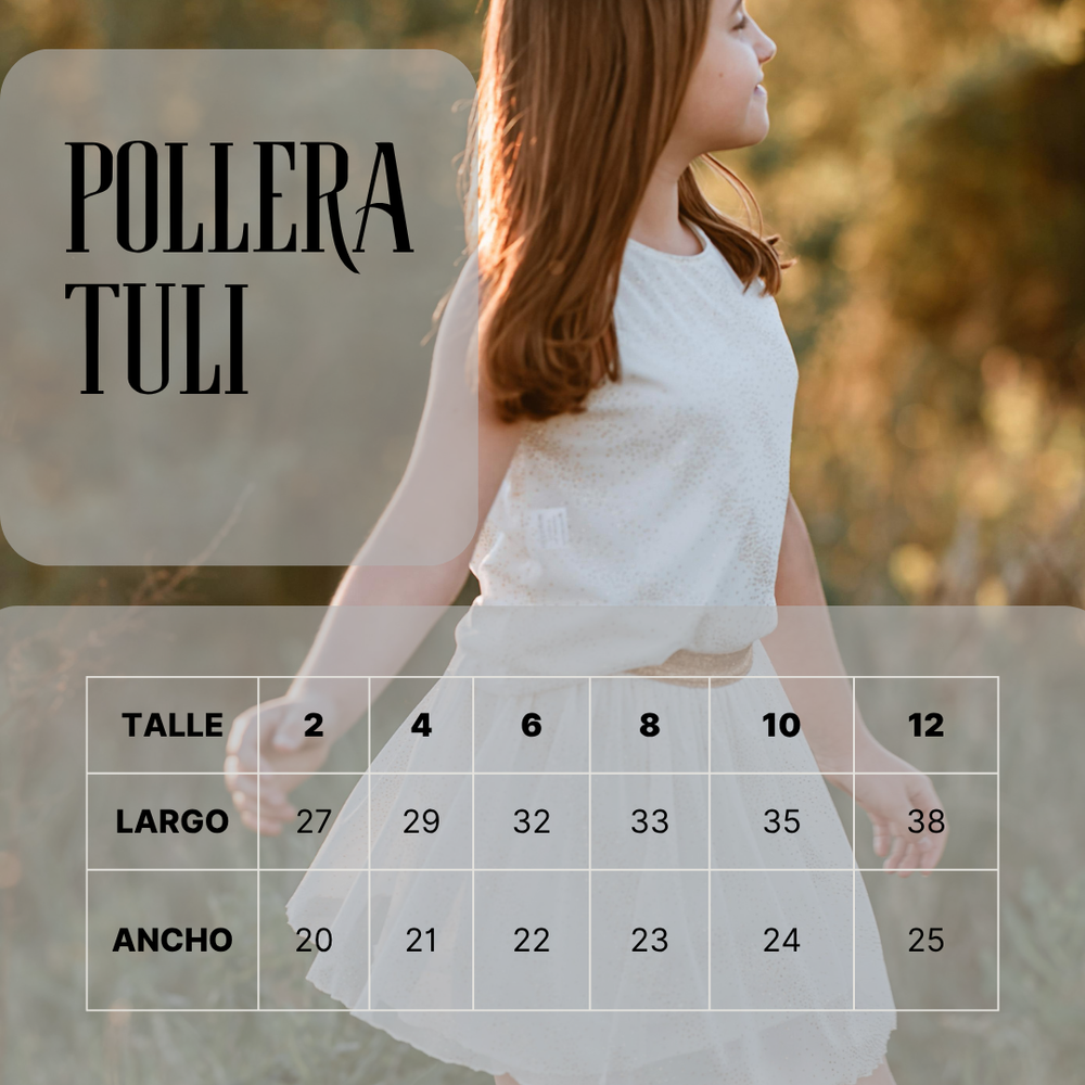 Una prenda llena de movimiento y encanto, ideal para quienes aman los brillos suaves y los detalles femeninos. Su tul con foil aporta un efecto luminoso delicado, mientras que la cintura elástica dorada agrega un toque de distinción que la hace única. Perfecta para combinar con blusas o remeras básicas y crear looks llenos de estilo.