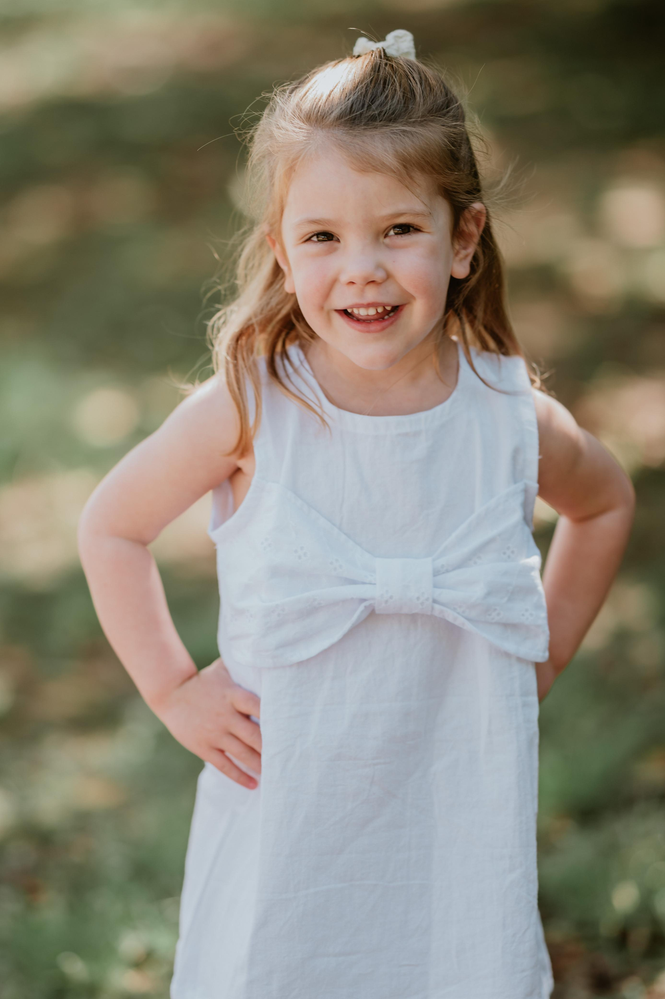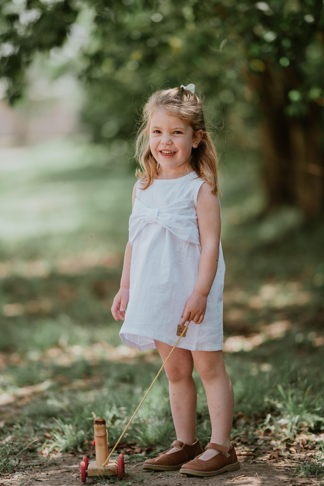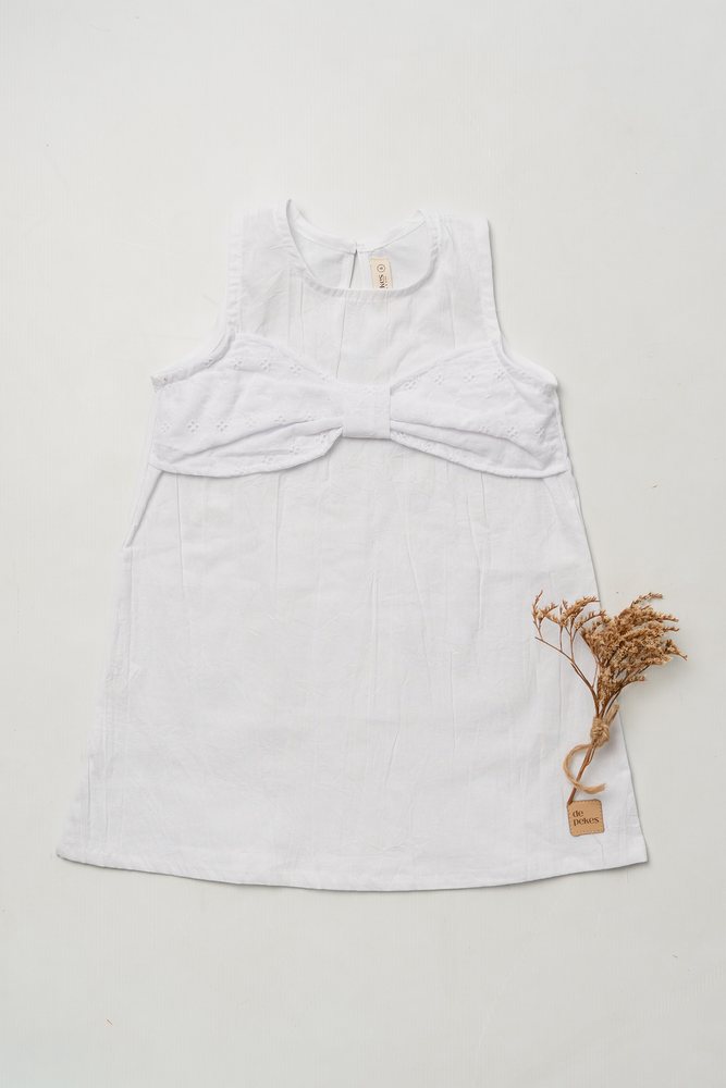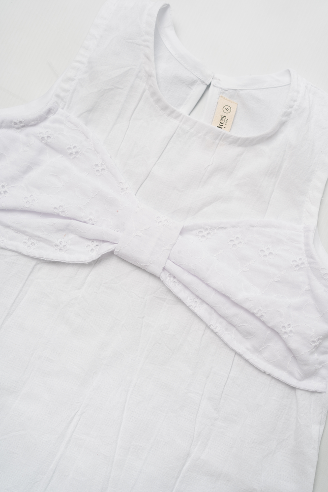 🤍 Vestido Blanco con Moño de Broderie – Tusor Liviano de Algodón