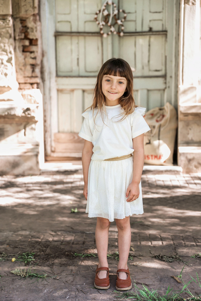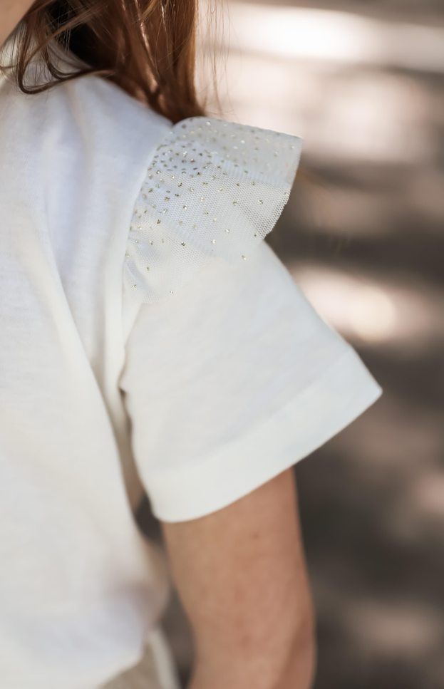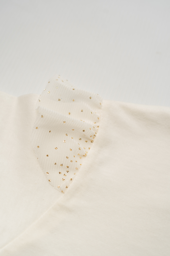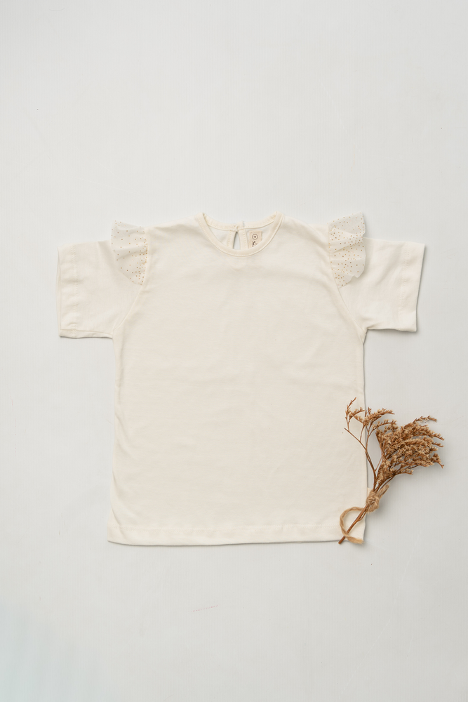Remera de algodon cruda con volados en tul.