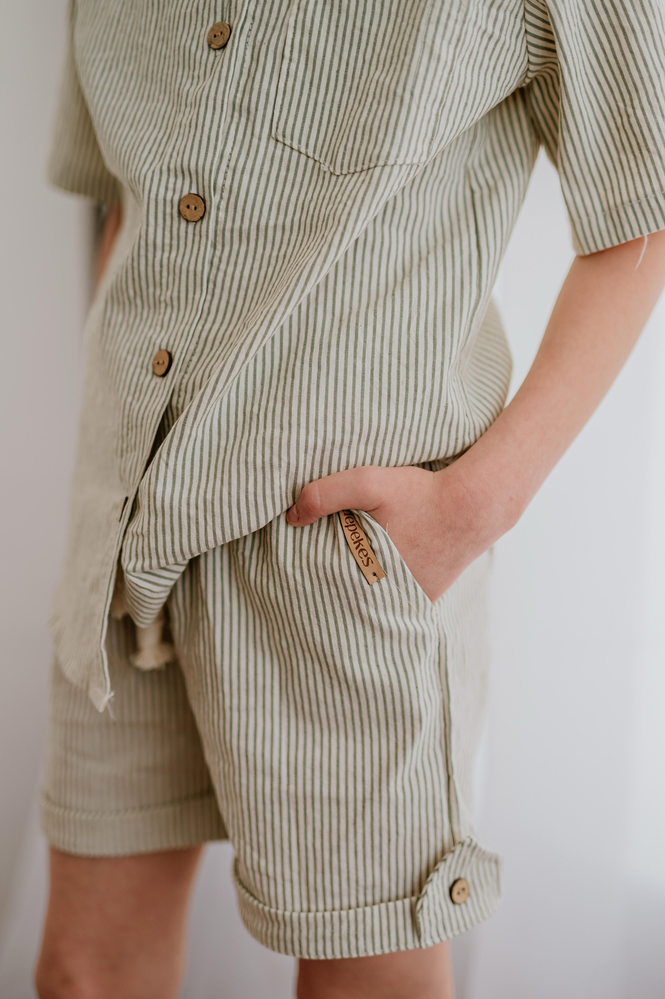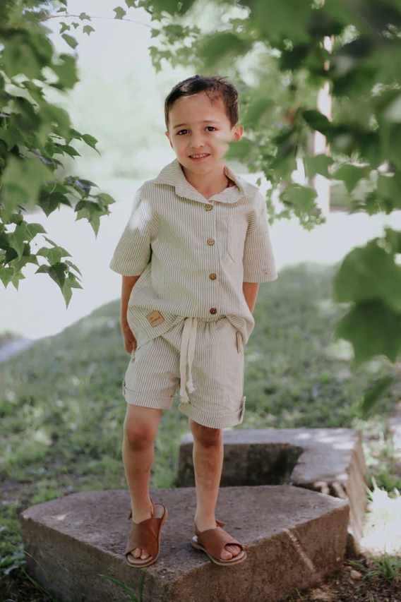Nuestro SHORT MONSTERA está pensado para acompañar a los peques en días de juego y aventura con total comodidad. confeccionado en tusor liviano y suave al tacto, ofrece una caida natura y un movimiento fresco. Su diseño lo convierte en una prenda versátil y cómoda. 🧵 Ficha técnica: Telas: tusor liviano Color: rayado verde Ajustes: cintura elastizada. Detalles: Bolsillos laterales, dobladillos con botón decorativo. Talles: del 2 al 12 kids