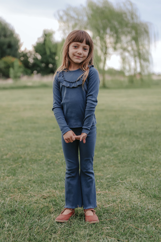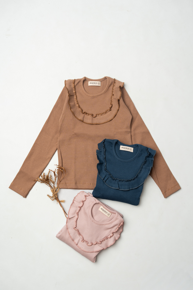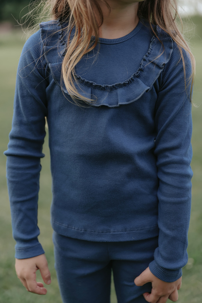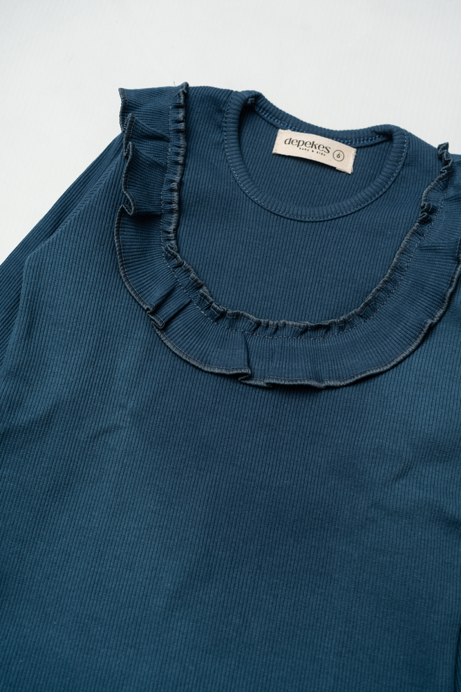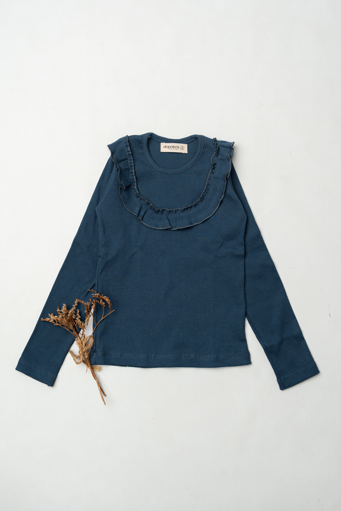 Remera azul con volado en el delantero.