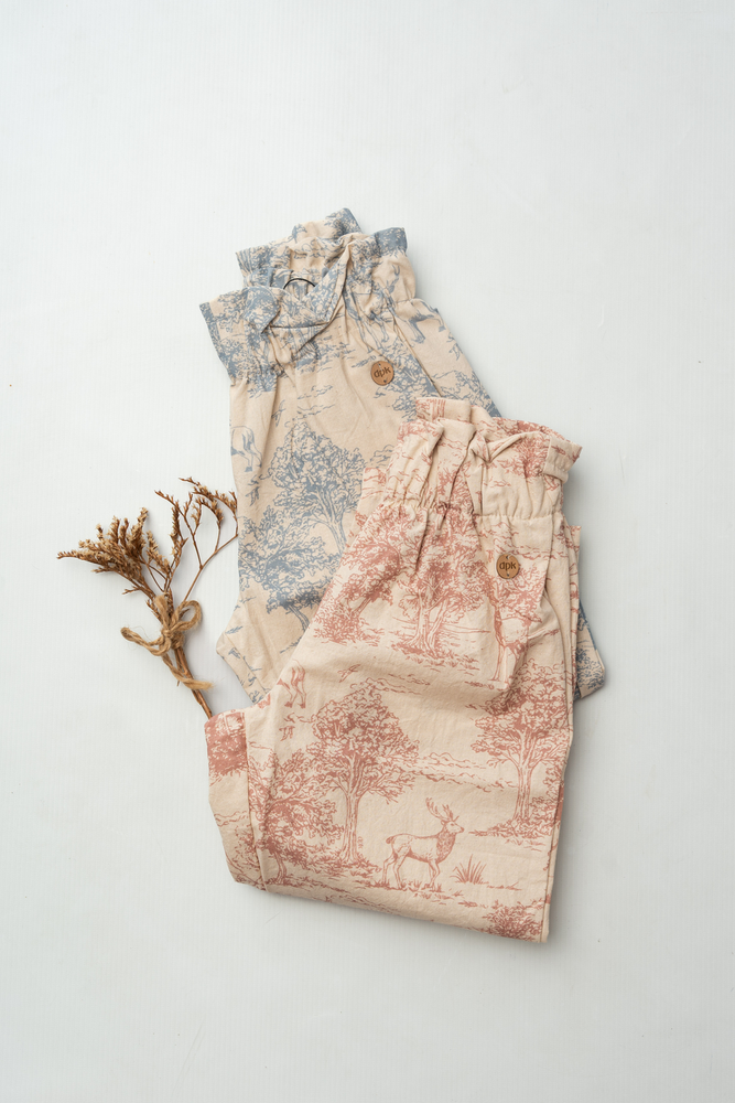 Un pantalón de estética delicada y natural, confeccionado en tusor liviano 100% algodón que aporta frescura y una caída suave 🌾🤍 Su estampa suma un aire clásico y atemporal, ideal para armar conjuntos dulces y versátiles ✨