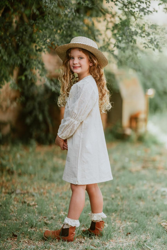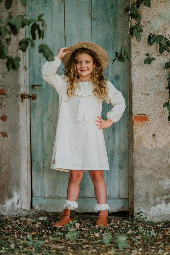 Confeccionado en tusor liviano, ofrece una caída suave y cómoda, ideal para acompañar el movimiento de las más chicas sin perder estructura.
