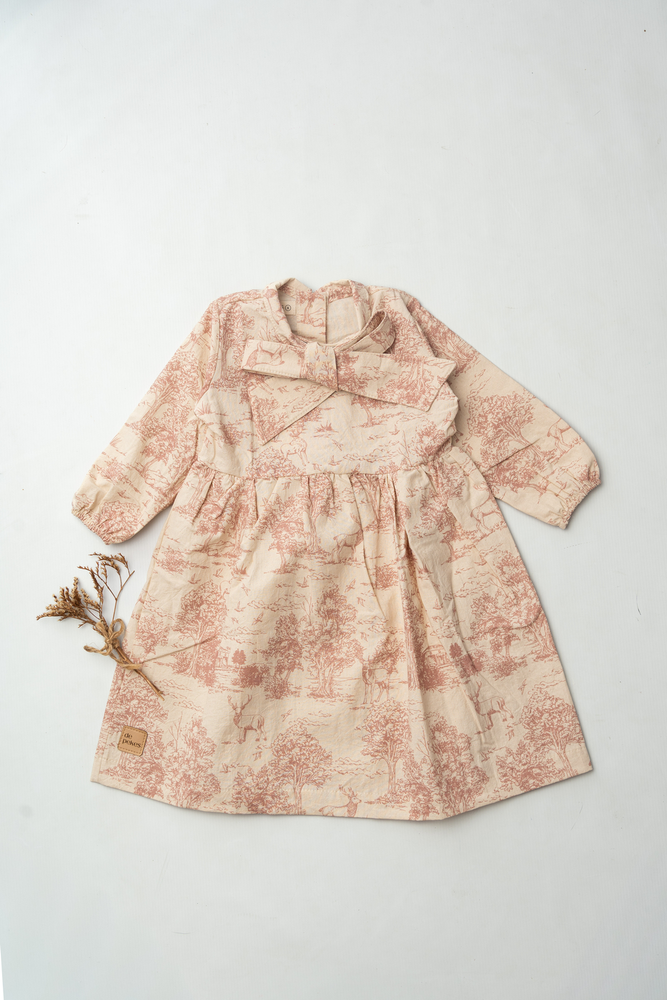 Su estampa delicada y su gran lazo frontal le aportan un aire clásico y encantador. El corte con frunce bajo el pecho genera volumen y movimiento, logrando una silueta cómoda y femenina. Ideal para ocasiones especiales, salidas o looks de media estación con un toque romántico.