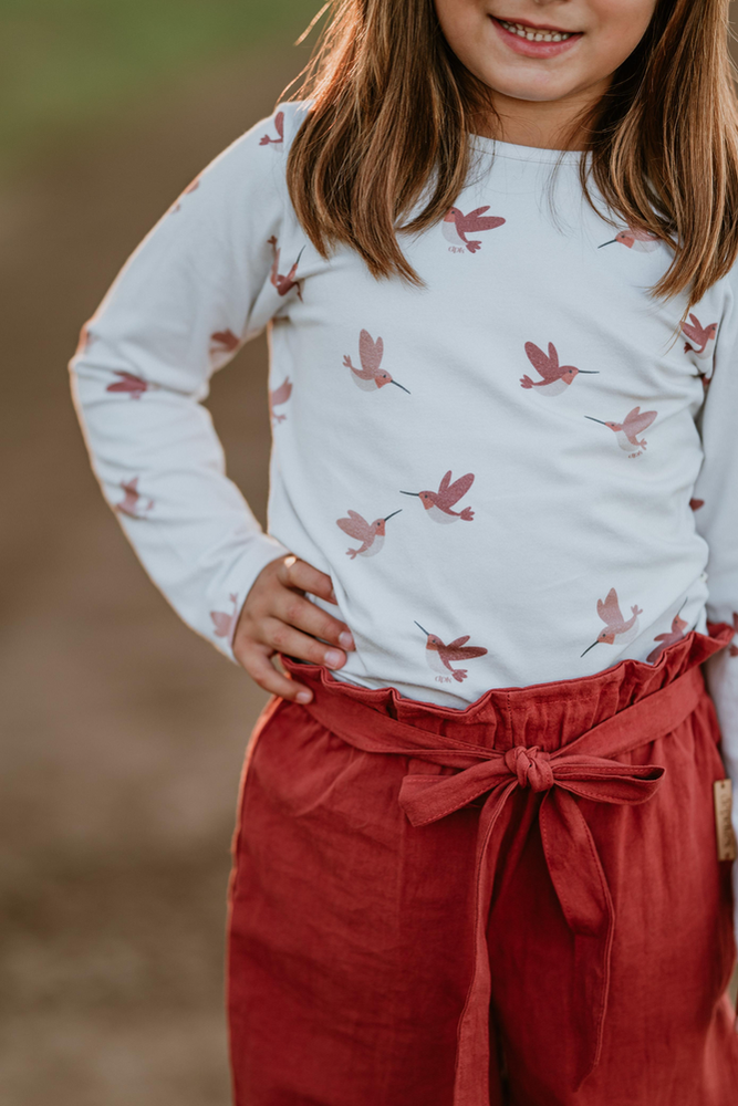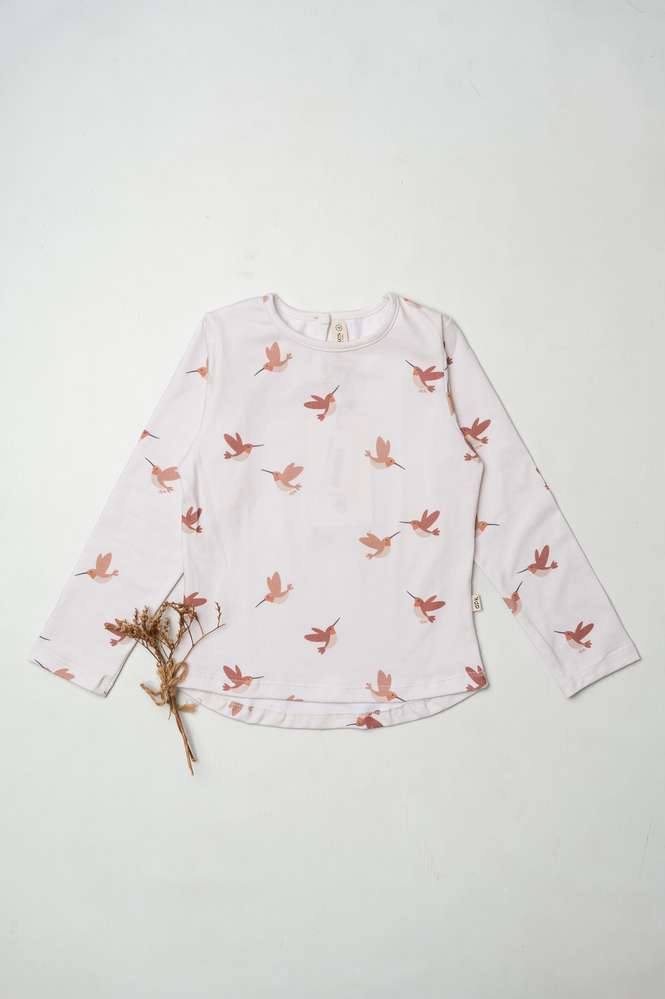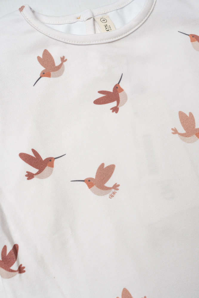 Suave como un abrazo y llena de ternura 🌸🤍. La Remera Lincoln enamora con su delicada estampa de colibríes, aportando un aire poético y dulce a cada look. Cómoda y flexible, acompaña cada movimiento con libertad y encanto 💫👕
