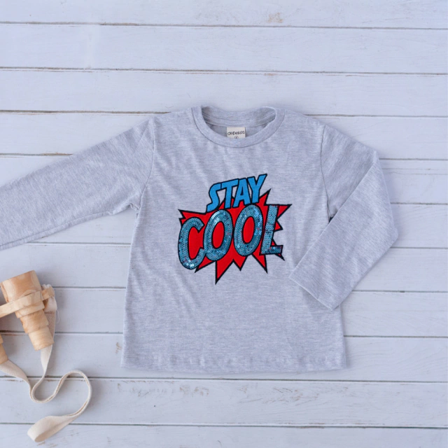 Remera confeccionada en algodon peinado con estampa en lentejuelas.