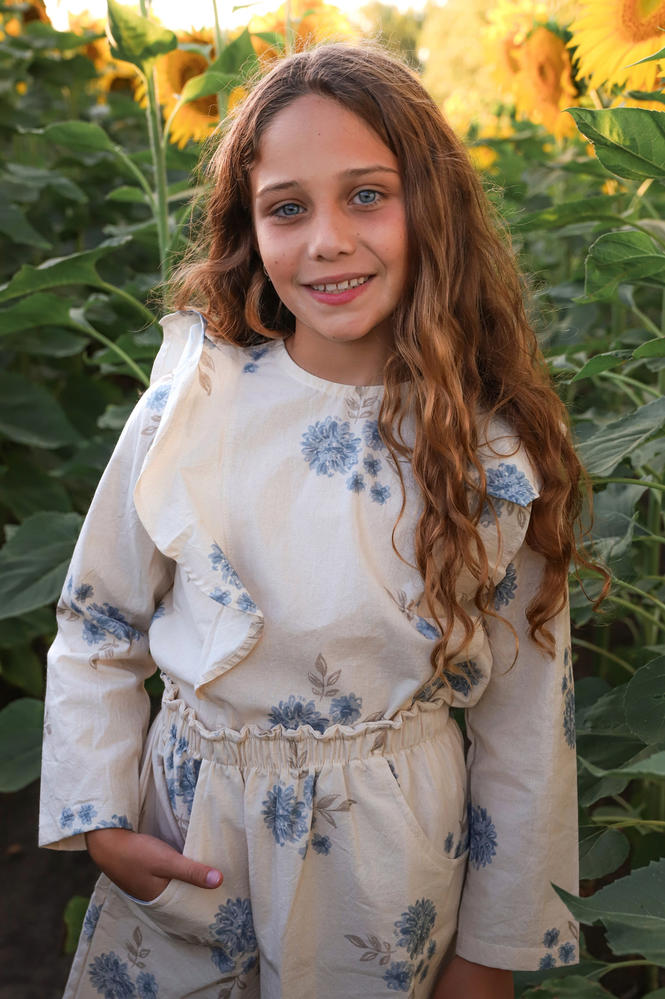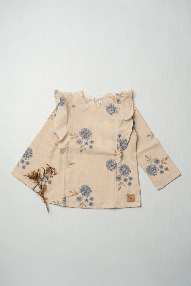 Blusa con un delicado estampado floreado, y dos volados delanteros.