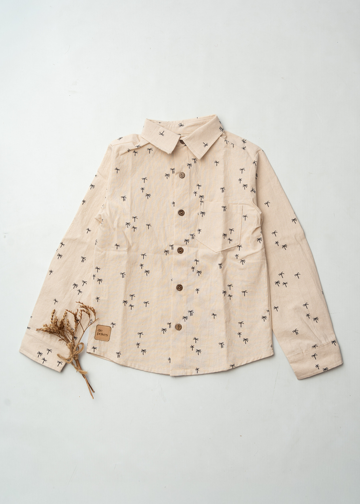 Detalles: Estampa de palmeras delicadas, botones frontales y bolsillo aplicado en el pecho