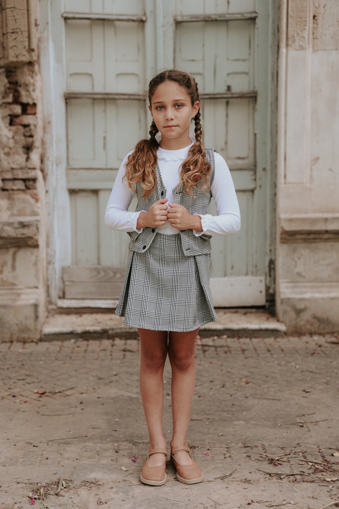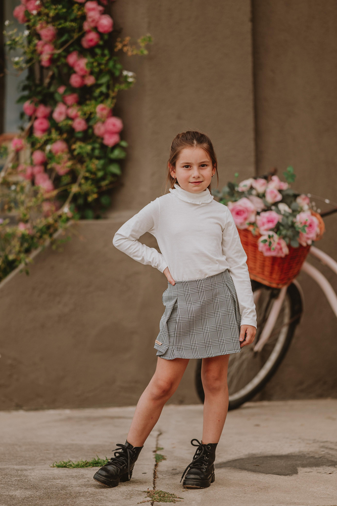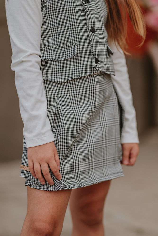 La Pollera Pantalón Murphy tiene ese aire clásico que nunca pasa de moda. Su delicado cuadrillé blanco y negro le aporta un estilo atemporal, ideal para looks más formales o para elevar un outfit de todos los días.