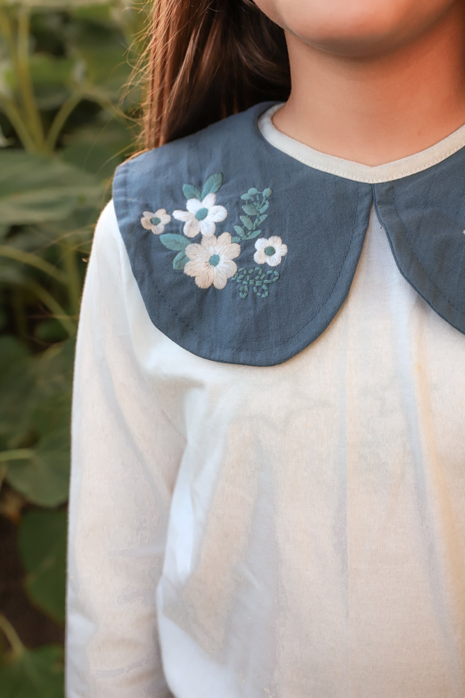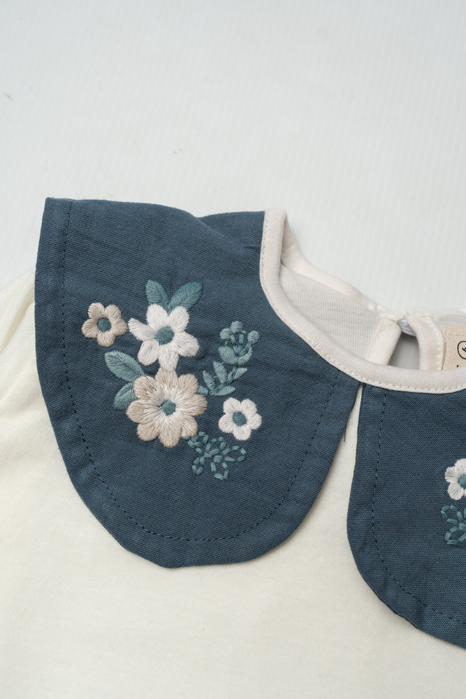 🧶 Detalle: Cuello tipo babero con bordado floral