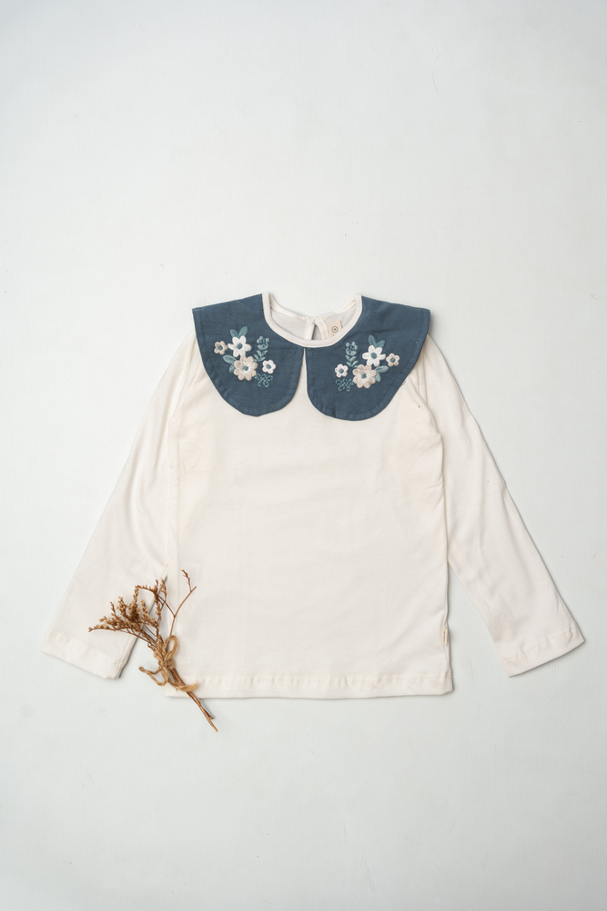 remera de algodon crudo con cuello aplicado con delicado bordado