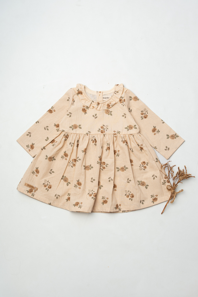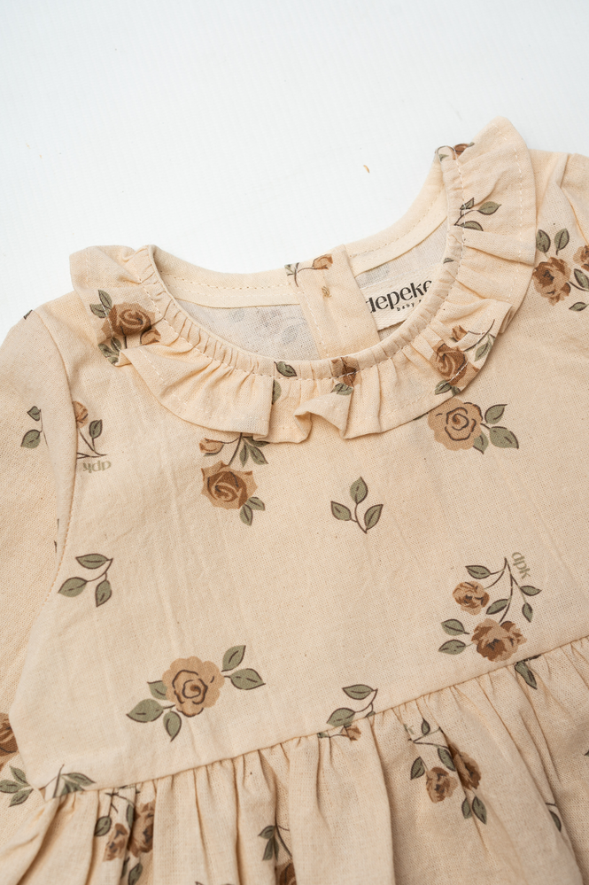 Vestido estampado, detalle de volado aplicado en cuello.-