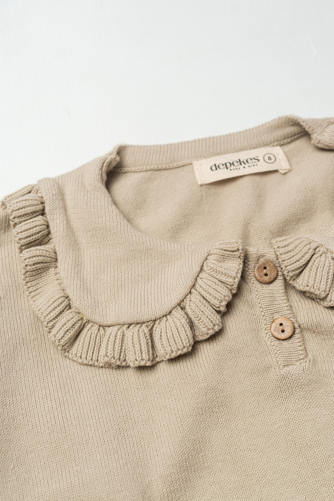 Su cuello con volados y botonera frontal aportan un toque romántico y atemporal, perfecto para looks cuidados sin perder comodidad. Es una prenda versátil, ideal tanto para el día a día como para ocasiones especiales 👧🤍