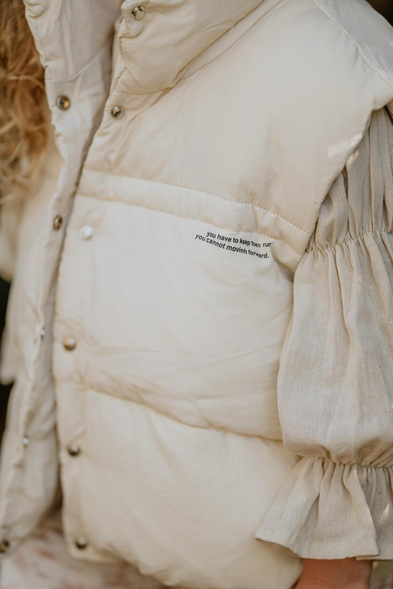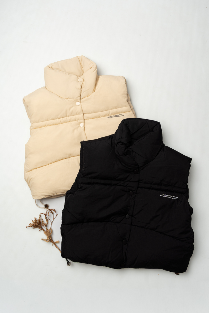 Materiales: chaleco confeccionado en microfibra con relleno.- Detalle broches en delanterio.