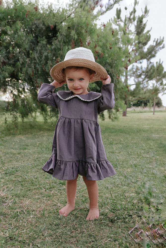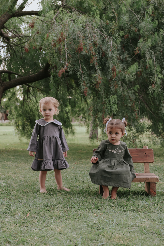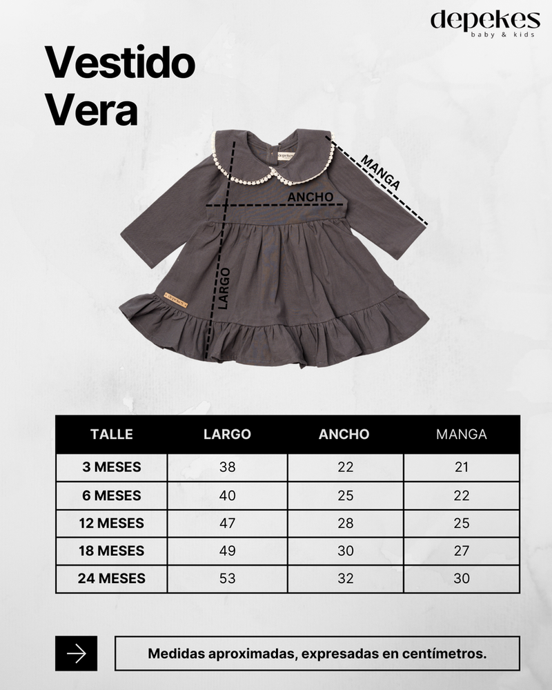 El Vestido Vera está confeccionado en tusor liviano 100% algodón, una tela suave y fresca que acompaña los movimientos del bebé con total libertad 🌿