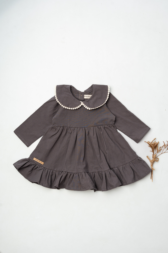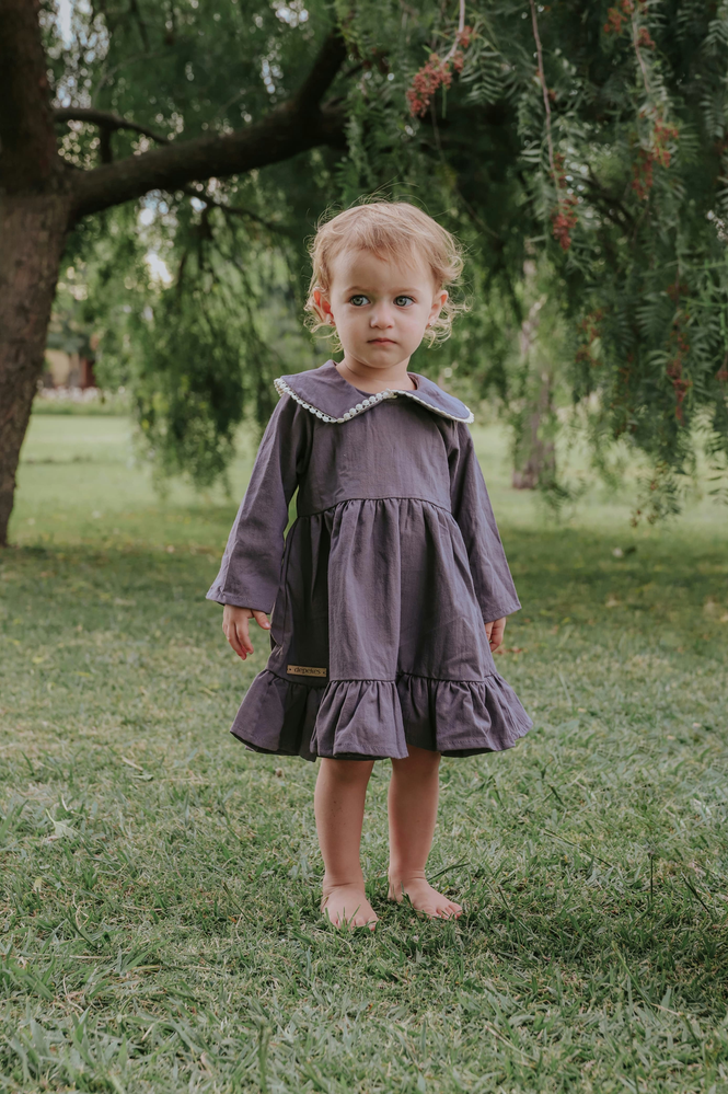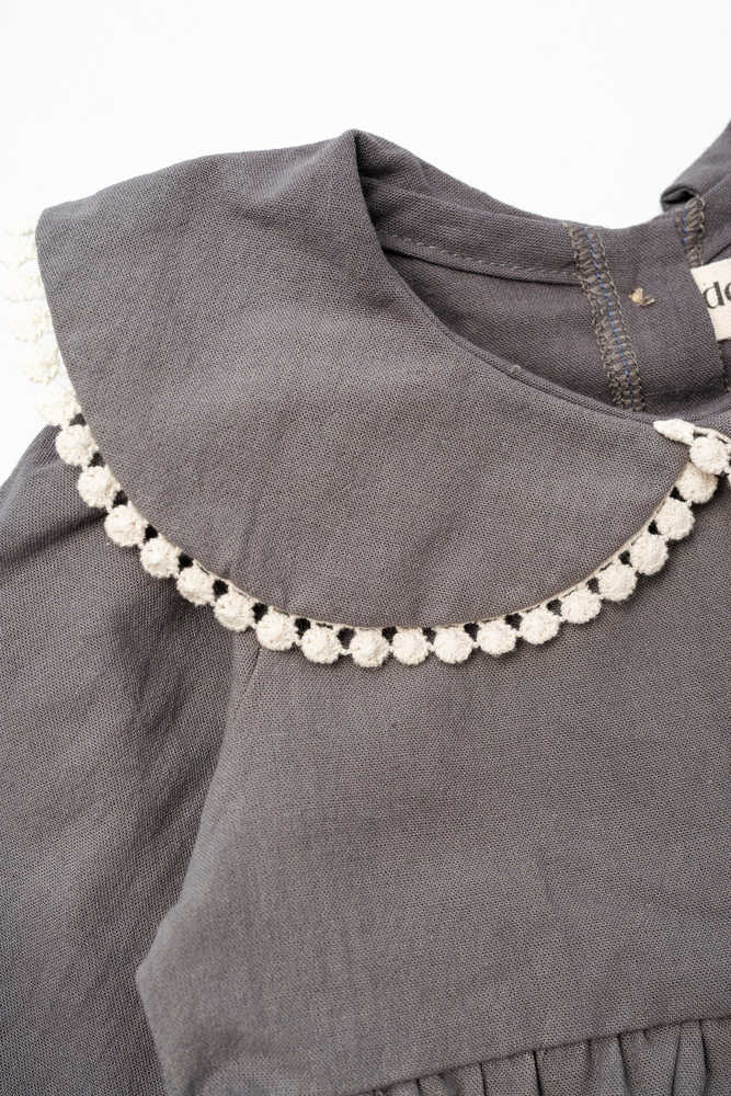 vestido cuello baby con aplique de guipiur.- Color cemento.-