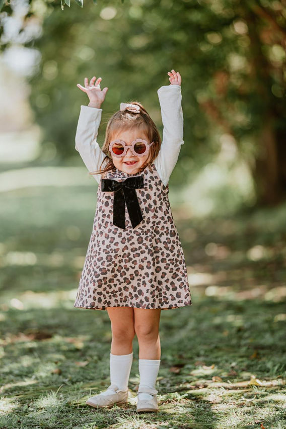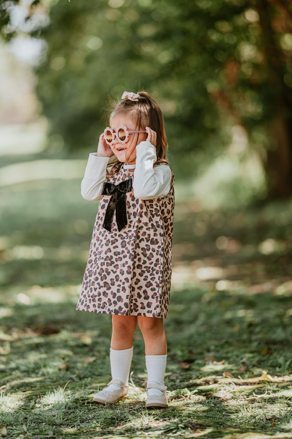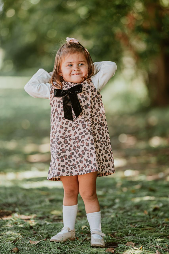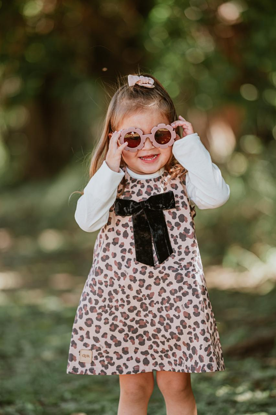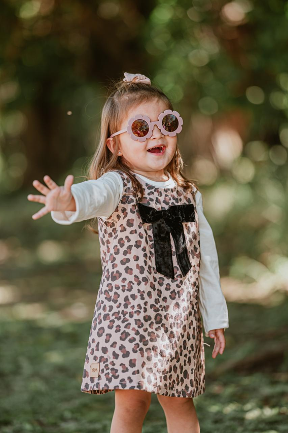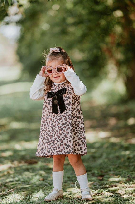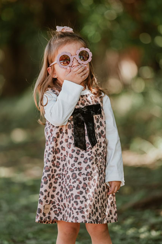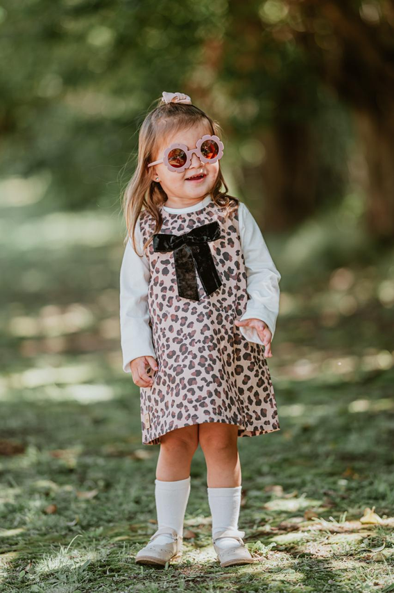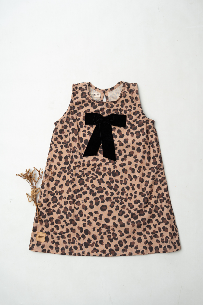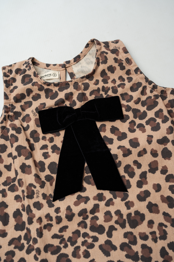 Su estampa animal print le da un toque moderno y divertido, mientras que el delicado moño de gamuza en el frente suma ese detalle tierno y especial que lo hace único. Es una prenda versátil y práctica: perfecta para combinar con remeras, camisas o poleras según la temporada, logrando looks cancheros y súper adorables.