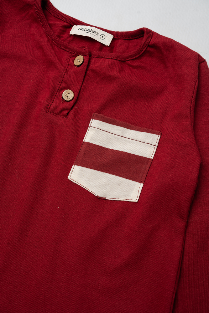 Remera Basica manga larga, Cartera y bolsillo aplicado.-