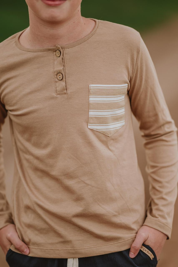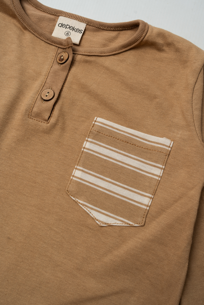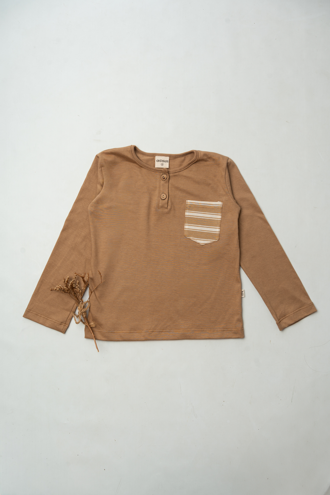 Remera basica manga larga. Cartera y bolsillo aplicado.-