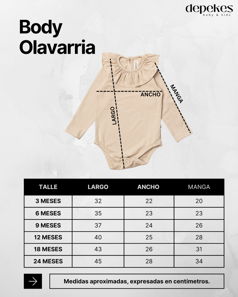 El Body Olavarría es una prenda pensada para vestir a los más chiquitos con dulzura y estilo sin dejar de lado la comodidad. Su tono neutro y suave lo convierte en un básico elegante, fácil de combinar y perfecto para usar solo o debajo de otras prendas.