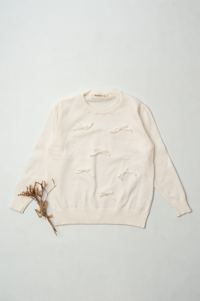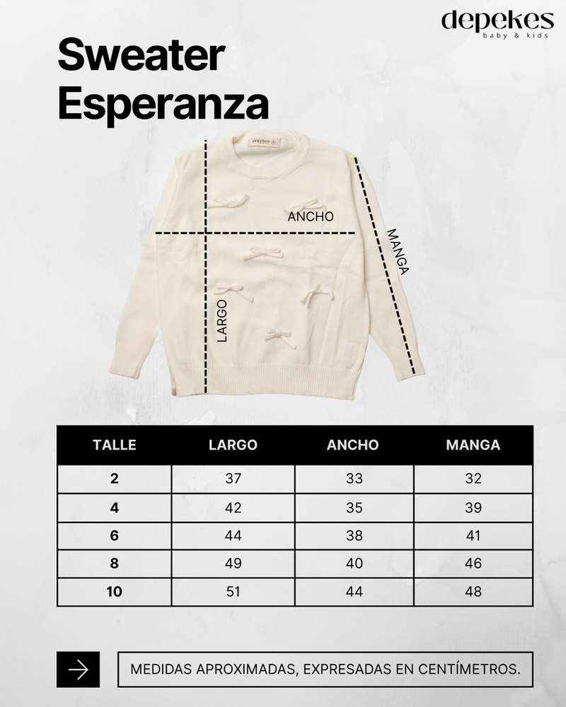 El Sweater Esperanza celebra la dulzura de la infancia con un diseño delicado y lleno de encanto 🤍. Sus pequeños lazos aplicados aportan un detalle romántico que lo convierte en una prenda especial, ideal para looks cálidos y cuidados.