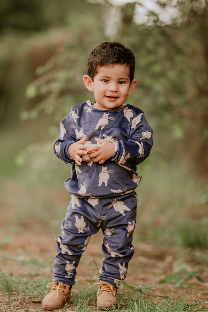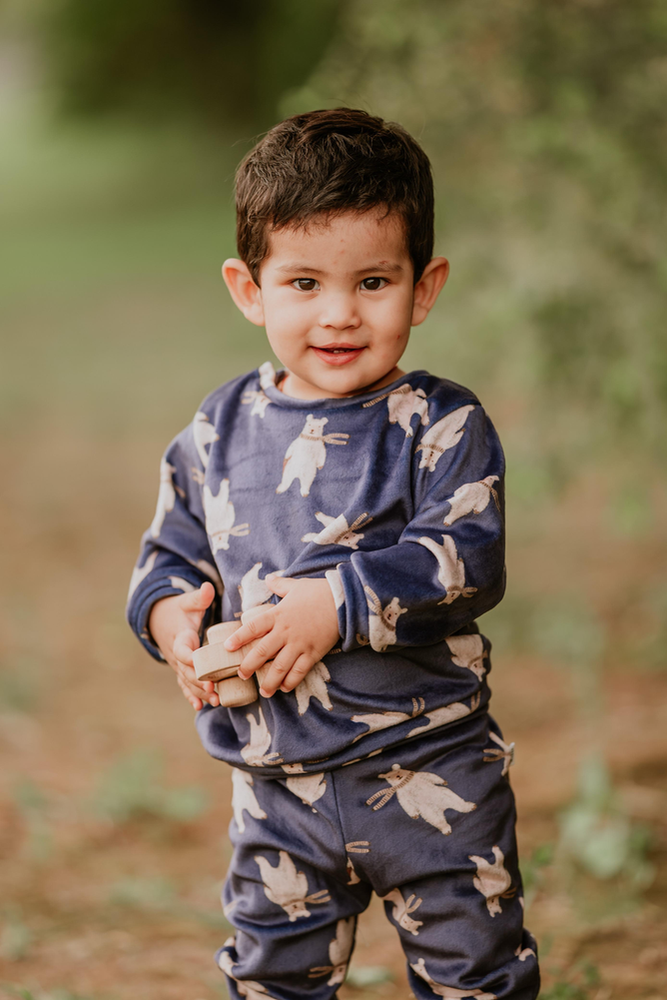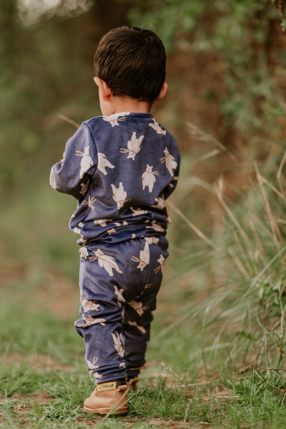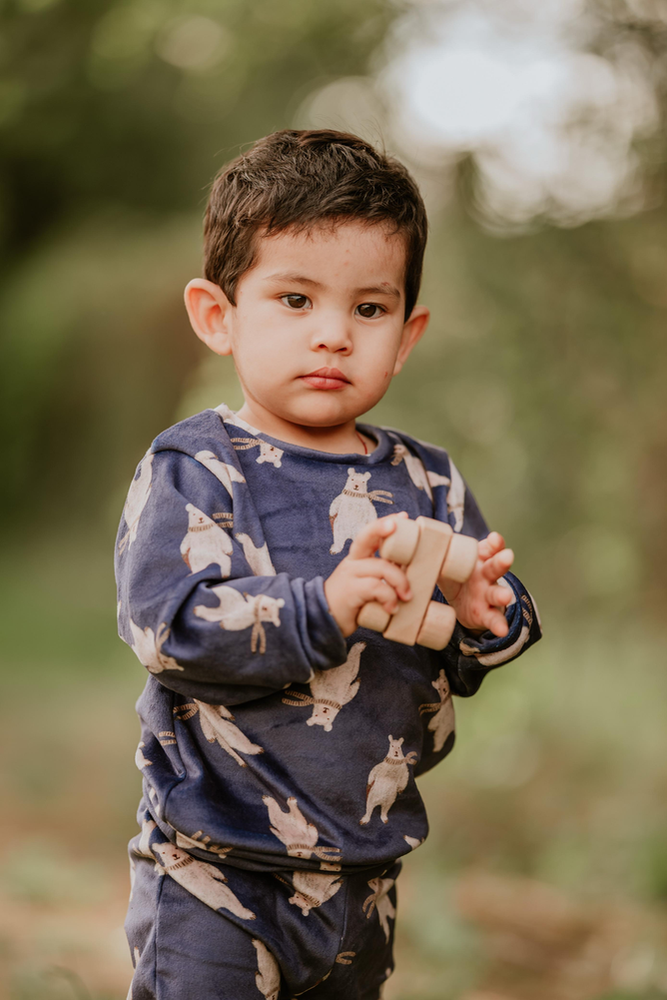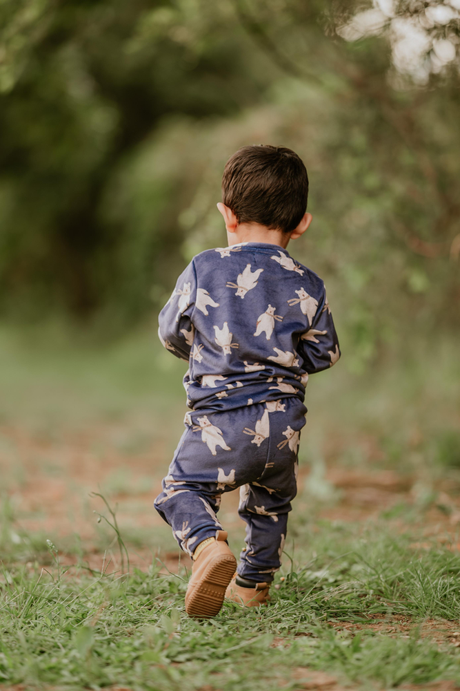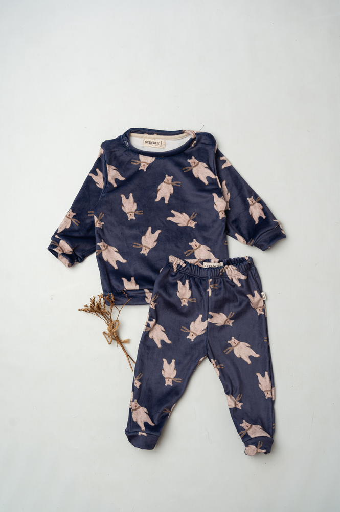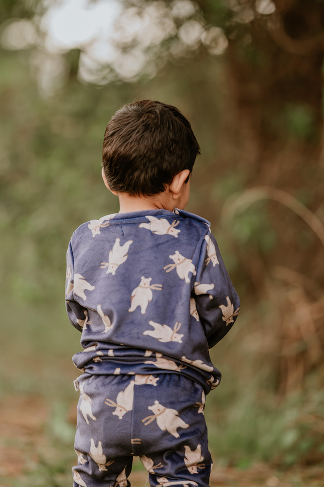 Nuestro Conjunto Azul está confeccionado en plush bifaz, una tela súper suave al tacto, calentita y perfecta para acompañar a los más chiquitos en los días frescos.