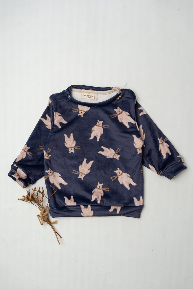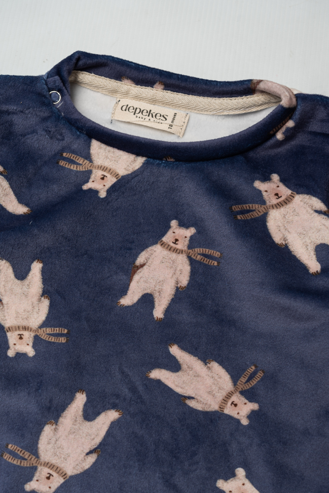 Su estampa de ositos en tonos neutros sobre fondo azul profundo le da un estilo dulce y encantador, ideal para looks cómodos sin perder diseño 🧸✨